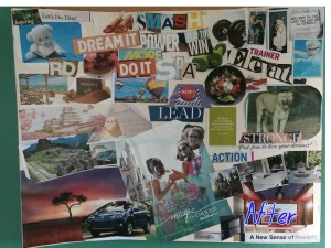 For me, I started a vision chart in January, but I didn’t finish because life got in the way. I announced my Call To Action was to finish it by July 30th and post it on Facebook. Well, I’m one day late, but here it is!